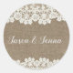 burlap wedding classic round sticker