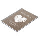 Burlap wedding planner journal notebook with rustic heart design. Cute country chic organiser for bride and groom planning their marriage party. Elegant script typography with weathered love symbol.