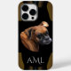 Burma the Boxer dog has a wonderfully noble air about her for this dog lover's design. Who could resist that face? Boxer fans will enjoy this design. initials. Original photography and design by Anura Design Studio.