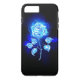 Blooming, abstract rose from blue flame on black background. Fire rose.