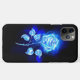 Blooming, abstract rose from blue flame on black background. Fire rose.