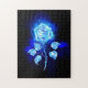 Blooming, abstract rose from blue flame on black background. Fire rose.
