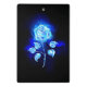 Blooming, abstract rose from blue flame on black background. Fire rose.