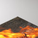 Early spring heralds my favourite type of yard work: burning brush. Flickering yellow and orange flames consume a pile of pine cones and sticks, leaving some light grey ash in the foreground. The dancing fire patterns take up most of the photo angling diagonally up to the left. The edges of the blackened pine cones glow orange highlighting their texture and form.