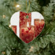 A collection of heart candles is on the front and a close-up of the design of the candle is on the back of a heart-shaped ceramic Valentine tree ornament.