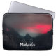 Landscape photograph of an unreal sunset taken at lake Lago di Fusine, Italy. Red color is a bit exaggerated but standing there in real life it really felt like this. In a short moment the sun broke through the fog and just as fast disappeared. With a personalizable monogram in the mountains.