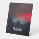 Landscape photograph of an unreal sunset taken at lake Lago di Fusine, Italy. Red colour is a bit exaggerated but standing there in real life it really felt like this. In a short moment the sun broke through the fog and just as fast disappeared. With a personalizable monogram in the mountains.
