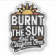 This design features the witty phrase "Burnt by the Sun, Lost in Chapter One" on a stark black background. With bold white uppercase letters and playful handwritten script, plus a distressed sun icon, it perfectly captures the humour of summer reading adventures. Ideal for book lovers who enjoy combining beach vibes with their love of stories. Great for casual wear, vacations, or as a fun gift for readers who’ve been “burnt” by too much sun and too many good books.