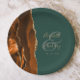 These elegant modern wedding plates feature a burnt orange watercolor design trimmed with faux gold glitter. Easily customise the gold-coloured text on a dark green background, with the names of the bride and groom in handwriting calligraphy over a large ampersand.