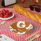 GRAD in bold white lettering curves around the edges of these burnt orange graduation paper bowls - perfect for serving snacks, salads, desserts and more. MATCHING items and more pre-done colour combinations in our store.