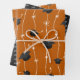 Burnt Orange & Black Graduation Cap Toss Wrapping Paper Sheet