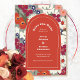 This boho chic floral is so on trend for the coming year. Colorful flowers of burgundy, burnt orange, sage green and navy are retro and fun. The QR code makes it easy for your guests to get the details for your special day