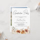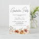 Sweet bohemian floral themed graduation party invitation featuring a lovely burnt orange and beige floral arrangement and an editable modern calligraphy font. The back of the invitation features the graduates photo and some details.