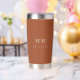 Burnt orange brown custom monogram initials name insulated tumbler