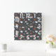Burnt Orange & Dark Grey Patterned Longhorns Square Wall Clock