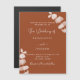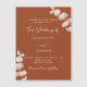 Dark burnt orange background, decorated with eucalyptus stems, sprigs. Personalise and and add your names and the details.