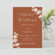 Back: dark burnt orange background. Add your wedding website url to the QR code for your guests to scan for more details/RSVP