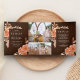 Burnt Orange Floral Photo Collage Wood Wedding Tri-Fold Invitation