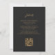The left-hand edge of this elegant modern wedding invitation features a burnt orange watercolor agate border trimmed with faux gold glitter. The customisable text combines gold-coloured script and sans serif fonts on a slate black background. The reverse side provides space for wedding details on a solid slate black background, along with a QR code guests can scan to visit your website and RSVP, which saves the cost of printing and mailing separate RSVP cards.
