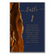 The left-hand edge of this elegant modern wedding table number card features a burnt orange watercolor agate border trimmed with faux gold glitter. The word "table" appears in gold-coloured handwriting script on a navy blue background. Add the names of your guests who are assigned to each table.