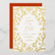 This is a perfect wedding save the date card that feels royal, romantic and elegant with real gold foil floral lace frame design with leaves and burnt orange colour on backside. Perfect for fall seasons, as well as all year round.