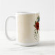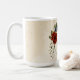 Unique coffee mug featuring romantic burnt orange and navy blue flowers and green leaves.