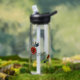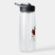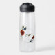 Unique water bottle featuring romantic burnt orange and navy blue flowers and green leaves.