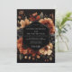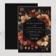Evoke a sense of dramatic romance with this elegant floral design, perfect for an autumn or evening affair. A stunning composition of lush botanicals is rendered in a rich palette of burnt orange, deep teal, and muted ochre. Painterly peonies and delicate blossoms bloom against a dark, moody backdrop, creating a sophisticated and memorable look for your nuptials.