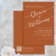 This burnt orange wedding invitation combines modern minimalism with stylish calligraphy for a warm, romantic look. Featuring elegant white script, a scannable QR code for guest convenience, and full personalisation options, it's ideal for fall, boho, or southwestern-themed weddings.
