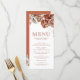 Elegant terracotta theme wedding menu featuring beautiful earthy flowers.
