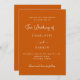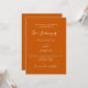 Burnt orange coloured background.  Personalise and add your names and the details. White text.