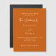 Burnt orange coloured background. Personalise and add your names and the details. White text.