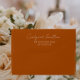 Burnt orange coloured mailing envelope for your wedding invitations and features your name and address printed on back flap in a modern script style. Personalise your envelope by editing and replacing name and address with your own. Edit further to change font style or colour. Select your envelope size that fits your invitation.