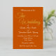 Simple style wedding invitation on a trendy, burnt orange colour background with "The Wedding" printed in stylised script with foil colour of your choice. Edit name, date, location, etc., with your own information printed in white lettering. Designed to coordinate with our Burnt Orange Simple Style Wedding collection.