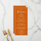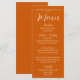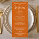 Simple style, burnt orange colour dinner menu card for your wedding that features white, stylised script along with your personalised information. Edit menu card and replace wedding names and date along with menu items that will be served at your wedding reception. Select your menu card style as desired.