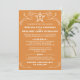This burnt orange wedding invitations features a white decorative ornaments and a white star. Customise the star in the header with the initials of the future bride and groom.