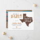 Announcing the latest baby made in Texas! Let everyone know when your little one arrives with this classy announcement in colours for the major Texas schools. Front features space for baby's name and birth details, along with your names. It all sits beside a big state shape of Texas in stripes. Back side for your horizontal image. Matching products available.