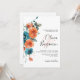 Burnt Orange Teal Floral Elegant Rustic Wedding Invitation
