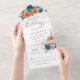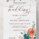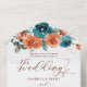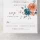 Burnt Orange Teal Floral Wedding All In One RSVP Invitation