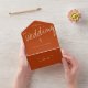 An all-in-one wedding invitation in burnt orange with a minimalist style. This invitation has yellow lettering and just enough information to win the day. It includes the invitation as well as a tear-away RSVP card. Simply add your information, add this invite to your cart, and enjoy your wonderful wedding.