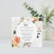 Honour a special woman with this elegant 90th Birthday party invitation. Burnt orange and white flowers are nestled in green leaves form a modern botanical frame. White lace pattern creates a beautiful background. All of the text can be edited, so you can describe your special celebration perfectly