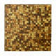 This product is made from a textured 'terra cotta' coloured mosaic square tiles pattern in shades of yellow, orange, rust, brown, and black arranged in a random fashion. The texture and mixture of warm earth tones in this unique abstract design give it a look reminiscent of a burnt English muffin.
