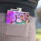 Red, purple, green, teal colourful pour painting effect digital fluid art and cells water bottle.