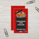 Tall cooking or stock pot bursting flavours and aromas business cards for cooking classes, personal chef, caterer or catering, or other gourmet food or culinary business. Black pot with colourful decorative ornaments bursting out the top.