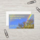 Rainbows, one in dark colours on right and one in faint colours in upper left. Both rainbows light up the tree branches beneath. Personalise with Business and Personal name in upper left, address and contact numbers at bottom. Text is in light yellow.