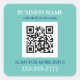Bus. Name Promo, QR Code, Lt Teal Blue White Square Sticker