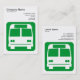 A business card template with a bold bus symbol or sign. Company name, business type and address on the front with name, job title, telephony, web and email addresses on the back, with the same layout.