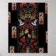 This design is a samurai warrior in full armour. This samurais helm is adorned with a skull and horns. He is wearing traditional samurai armour coloured in a mix of gold and blacks with red accents. He is holding a katana which is the traditional samurai weapon. There are banners of "bushido" in kanji; which is the code of honour followed by samurai.