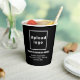 Customisable paper cup for your cafe business. Paper cup with the address of your coffee shop business for customers to know and easily find it when they will come back again or recommend it to their families or friends. Paper cup with your business phone number for customers to know the number to call when they will order again by phone. Paper cup colour is black and font colour is white. To customise this paper cup, upload your business logo, type your business or company name, address and phone number. Please check the appearance on front and back sides after uploading logo and typing texts. If the appearance is pleasing to you, you can place your order now. If you need to resize and move the logo and texts to fit on this paper cup, please change in the design tool. You can also make other changes according to your preference in the design tool such as changing the cup colour, font colour and font style. Customise it and use it like a marketing material to advertise your business, promote your brand name or build brand name awareness while your customers enjoy sipping the tasty and aromatic coffee that you served to them.