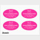 Customisable sticker that you can put your business name, address and phone number. You can use it as marketing material to advertise your business or to promote your brand name to customers or clients. Sticker that you can use to build brand name awareness. You can also use it as accessory of product packaging materials. Designs are white texts on pink background and oval shape. To customise this sticker, upload your business logo, type your business or company name, address and phone number. After uploading logo and typing texts, please check the appearance. If the appearance is pleasing to you, you can place your order now. If you need to resize and move the logo and texts to fit on this sticker, please change in the design tool. You can also make other changes according to the appearance that you prefer in the design tool such as changing the background colour, font colour and font style.